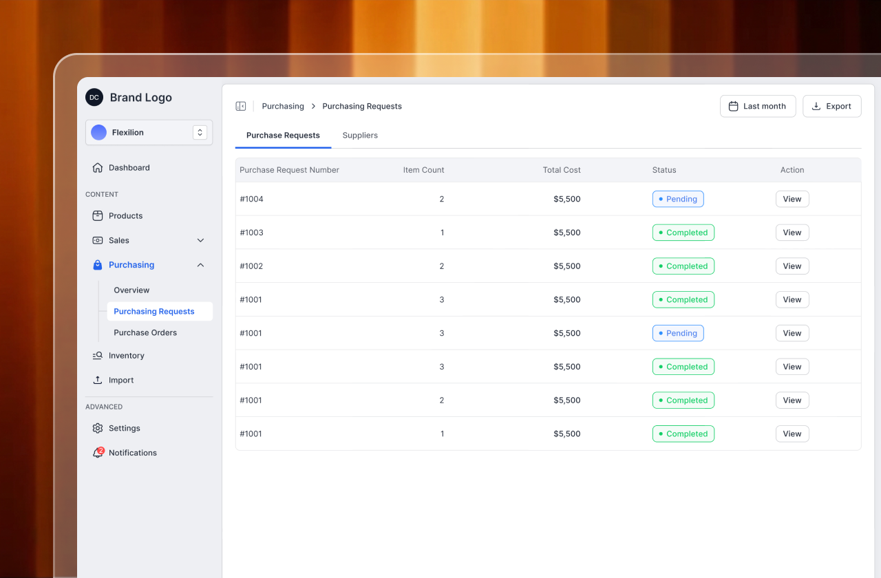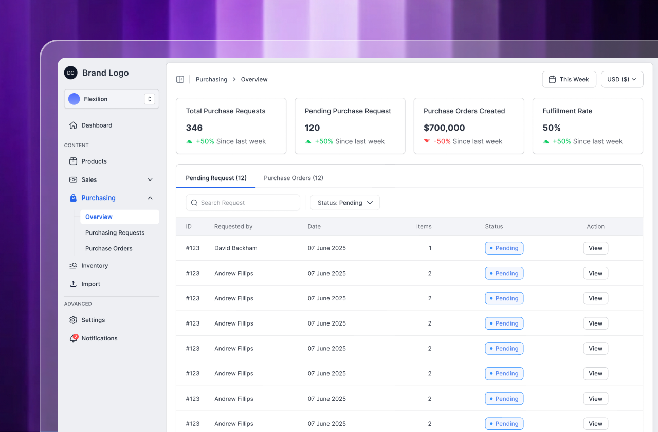 - Track total and pending purchase requests easily