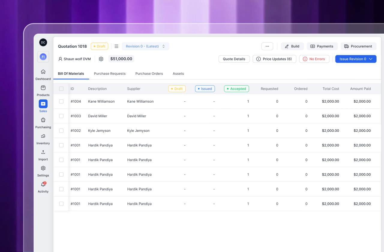 Keep sales, procurement, and operations synced in real time.